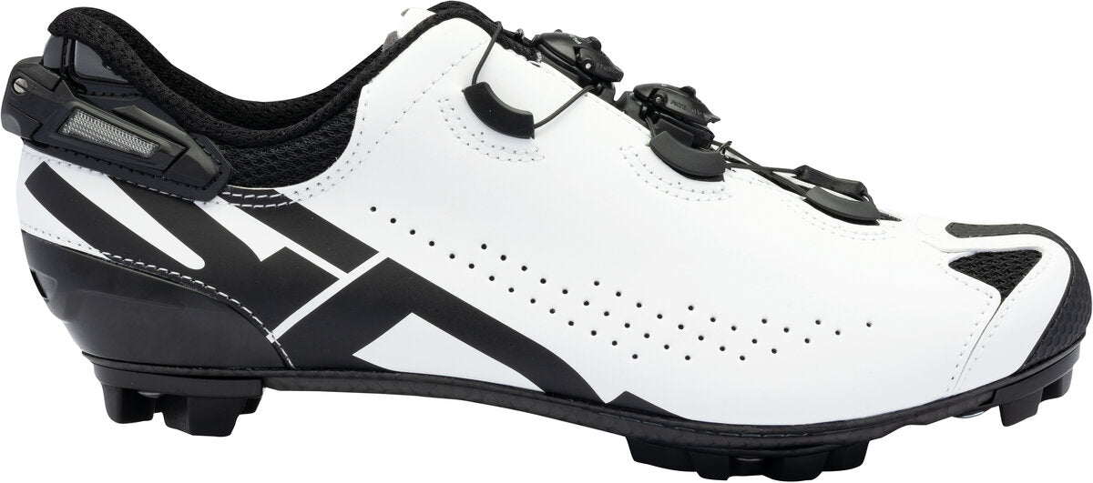 The Sidi Tiger 2S SRS transfers all the muscle power unleashed while maintaining an extreme level of comfort, allowing your mind to focus entirely on the course. The Tecno 3 closure technology is strategically placed to prevent areas of contact with other riders, to better handle crowded situations. The upper is made in Bioveg material derived from recycled microfibers with an external finishing made from cereal The MTB SRS Carbon sole harnesses the strength of the interwoven fibers for energy transfer and its SRS technology allows riders to keep the grip level at a maximum all the times.
